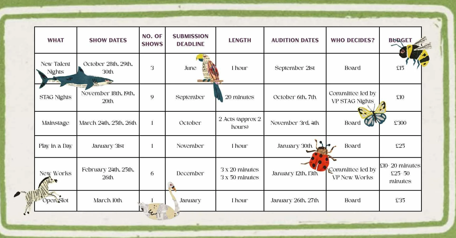 CalendarEver wanted to see all of STAG’s opportunities for the academic year laid out in a handy table? Well look no further!