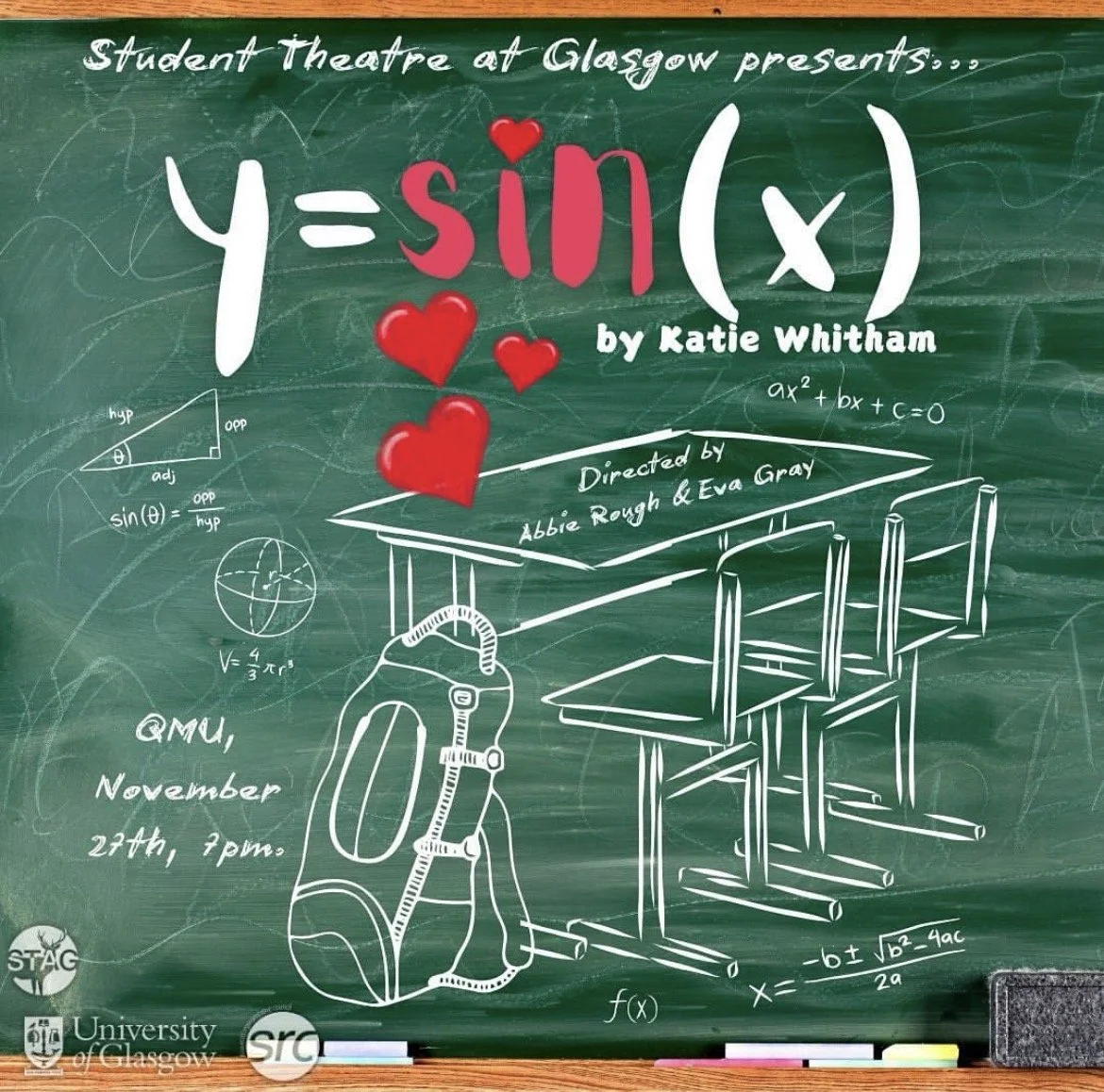 y = sin(x) follows Ava, a rebellious teen with a crush on her strict math teacher, Miss Finch. Teaming up with awkward classmate Francesca, Ava’s pranks and antics spark unexpected friendships and self-discovery as they navigate high school, queer identity and M&S’s finest produce.